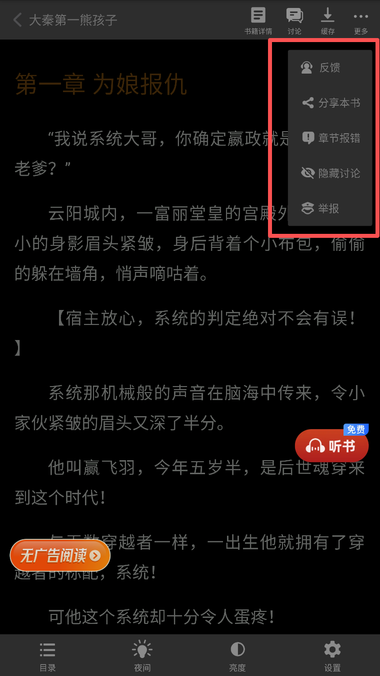 3、使用阅读界面功能,点击“反馈”提供意见或问题。