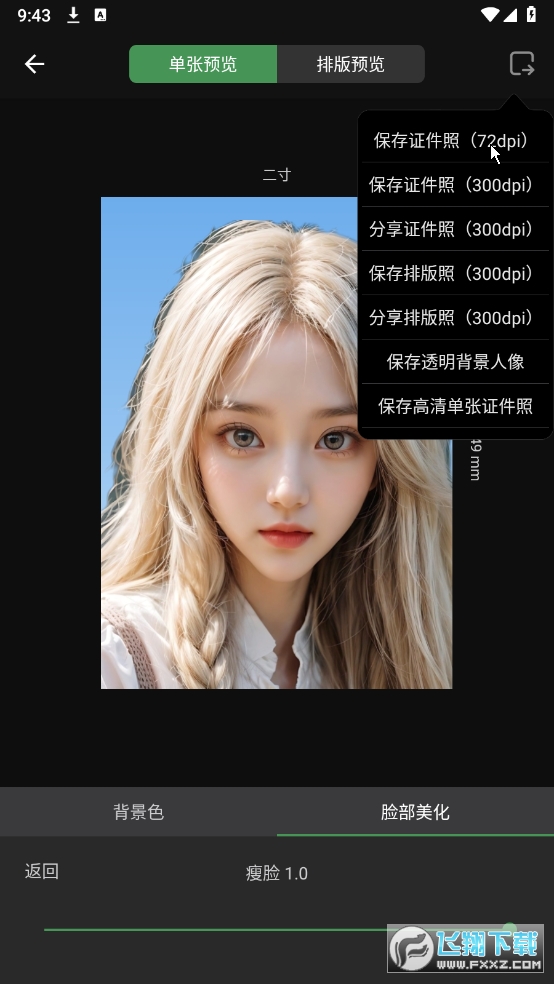 既支持单张保存排版后的证件照,也支持一次性保存所有排版后的证件照,并且还具备实时预览功能,能使用户在保存前确认最终效果。