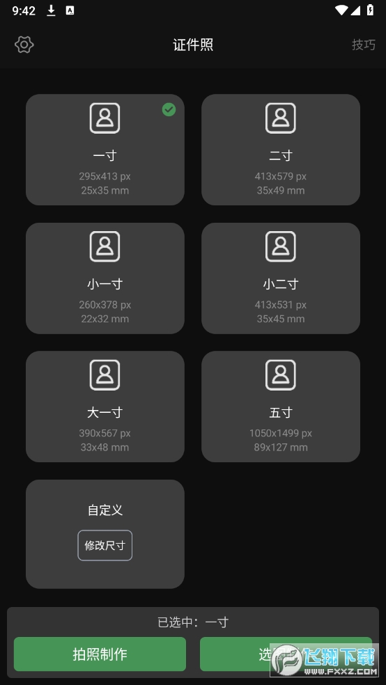 用户能够依据自身需求,挑选不同标准尺寸大小的证件照,像一寸、二寸之类,以保证照片满足各类用途的需求。