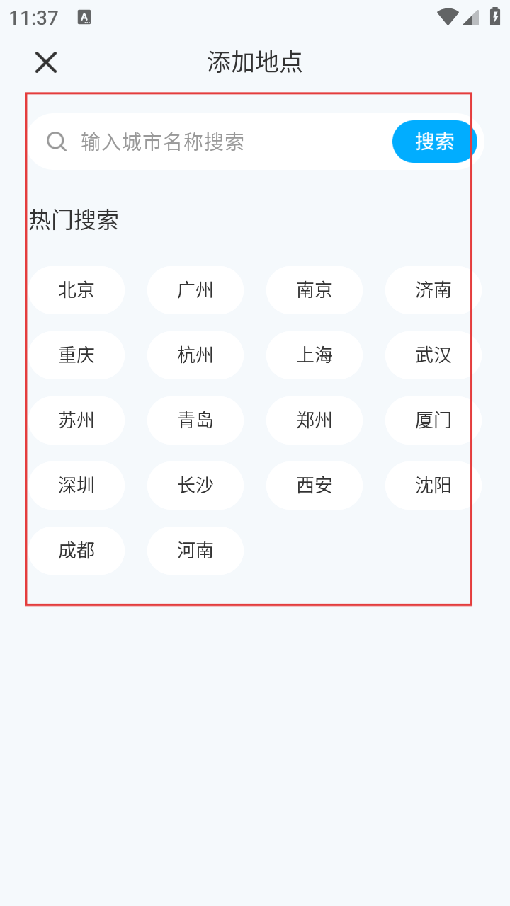 2、在添加地点页,可搜索或选热门城市如【北京】【广州】等添加。