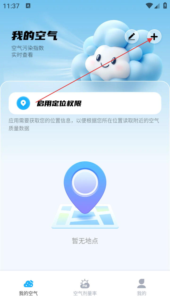 1、打开应用,点击右上角【+】,进入添加地点页。