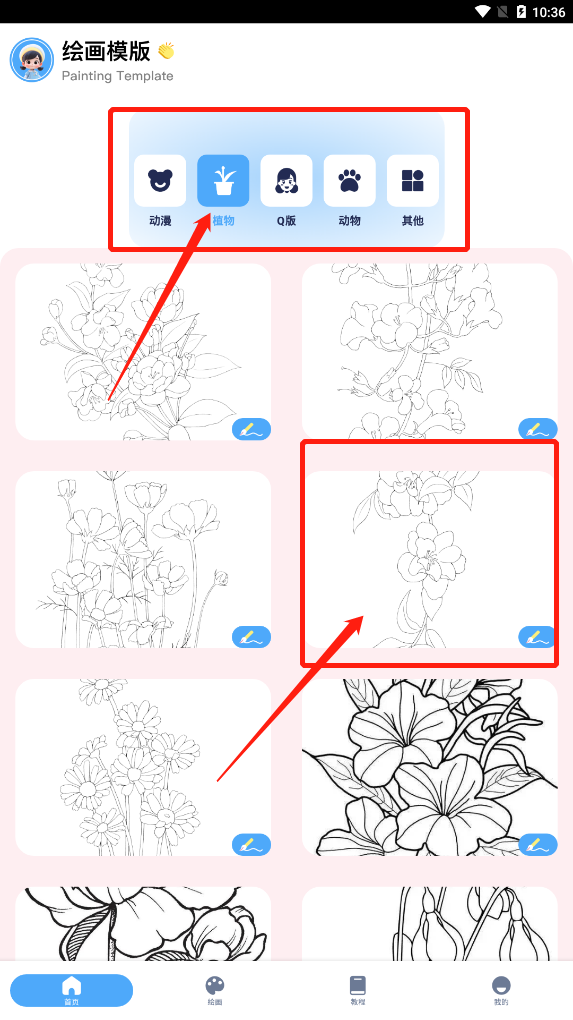 2、选择模板:打开APP后,进入模板库,挑选喜欢的绘画模板作为创作基础。