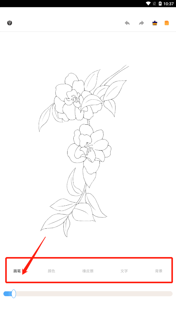 2、屏幕的最下方可以选择画笔、颜色和橡皮等。
