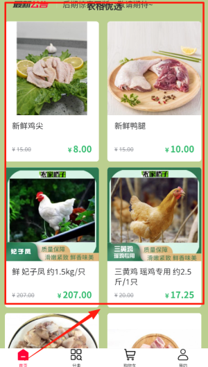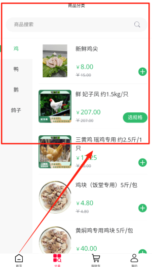 2、在首页选择商品分类,浏览各类禽类商品,用筛选功能以减少查找时间,找到心仪产品。