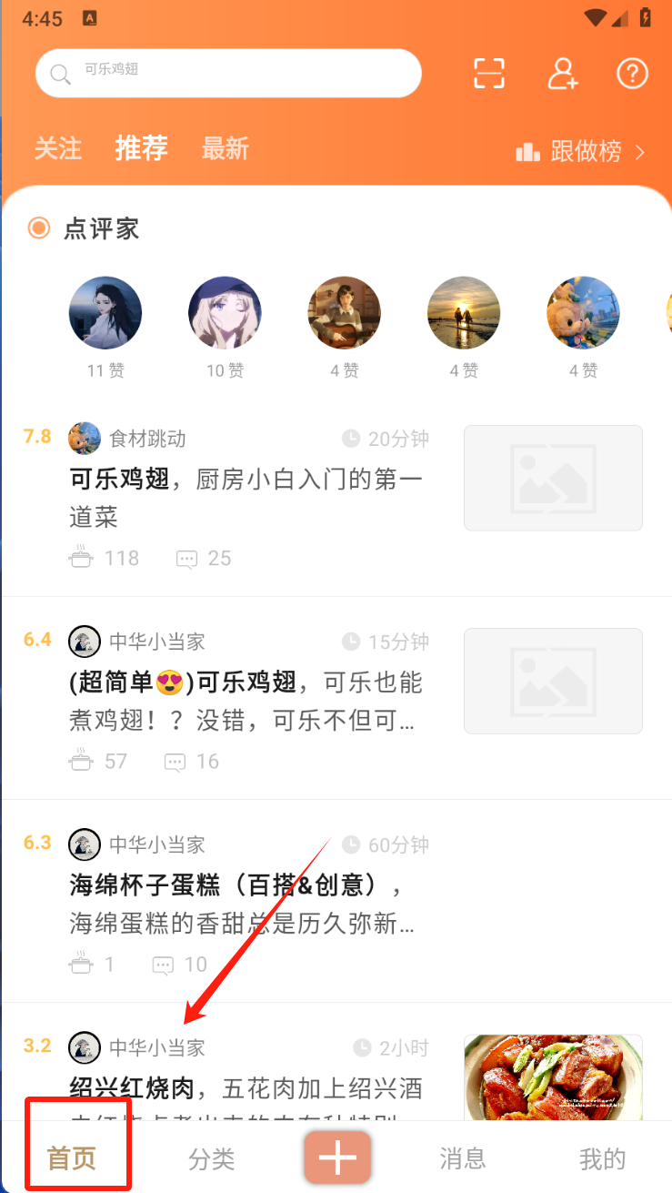 1、浏览推荐内容,在首页向下滑动查看推荐的美食视频和文章。