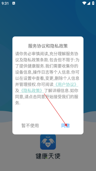 1、打开应用查看协议点击同意。