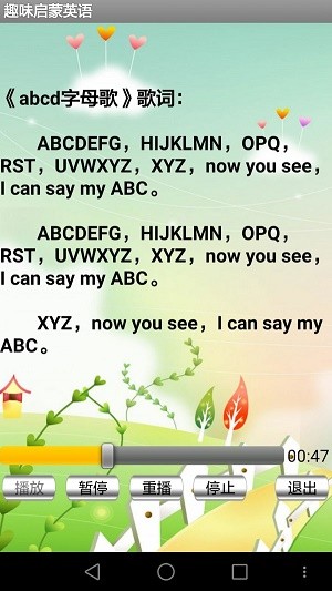 趣味启蒙英语是一款专门为幼儿设计的英语学习软件。该软件通过生动有趣的故事、游戏、歌曲等多种方式,让孩子们在轻松愉快的氛围中学习英语,帮助他们快速掌握英语基础知识,逐步提高听说读写能力。趣味启蒙英语包含了大量的故事、游戏、歌曲等多种内容,让孩子们在学习英语的同时也能享受到快乐。感兴趣的小伙伴赶快下载最新的软件版本吧。