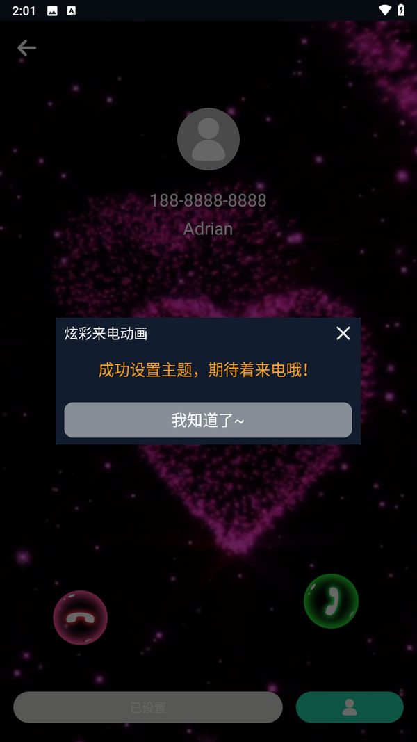你能够自由设定各类精致的来电动画,更新节奏迅速,随时都能切换来电视频!