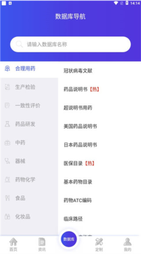 7、进入数据库,用户可在此查看各类药品数据库。
