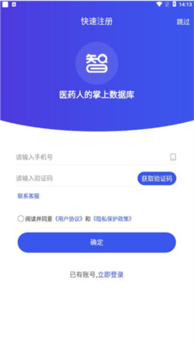1、在本站下载并安装药智数据,安装完成后打开该软件,进入软件界面进行登录注册操作。
