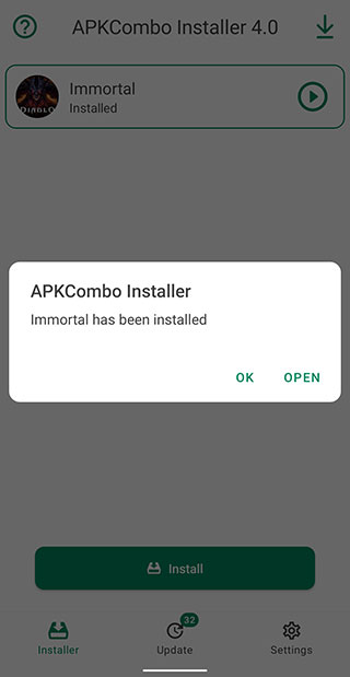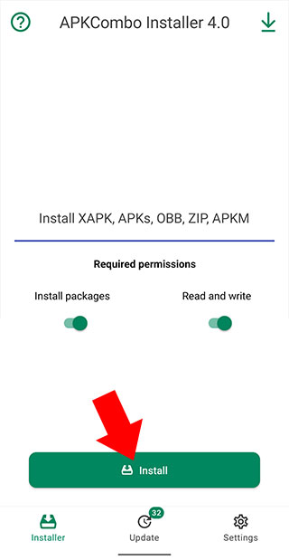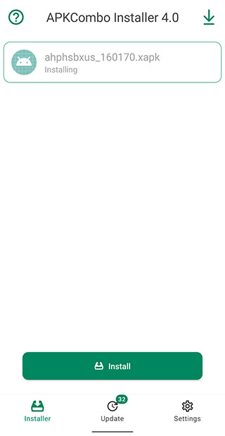 1. 第一步,我们得安装xapk安装软件,此处选用的是APKCombo Installer 。安装完成后,打开该软件,接着点击界面下方的【Install】按钮。