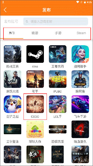 2. 挑选下方你对应的游戏账号类型,随后进入编辑界面。