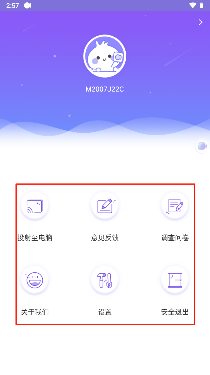 2、查看应用提供的各项功能。包括投射至电脑、意见反馈等,根据需要选择。
