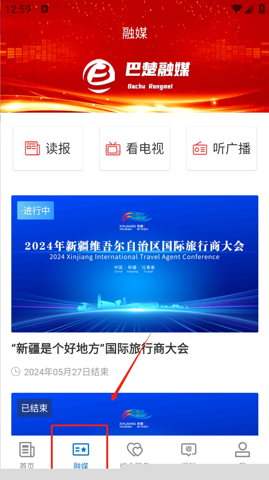 2、进入融媒:点击融媒图标获取多媒体内容。