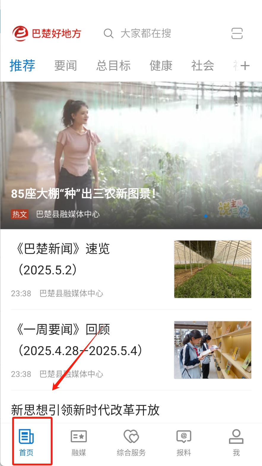 1、访问首页:点击首页图标查看推荐新闻和文章。