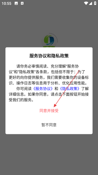 1、打开应用查看服务协议点击同意并接受。