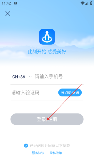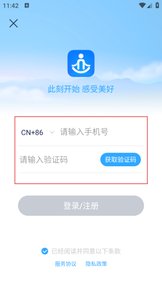 2、进入登录界面输入手机号和验证码。