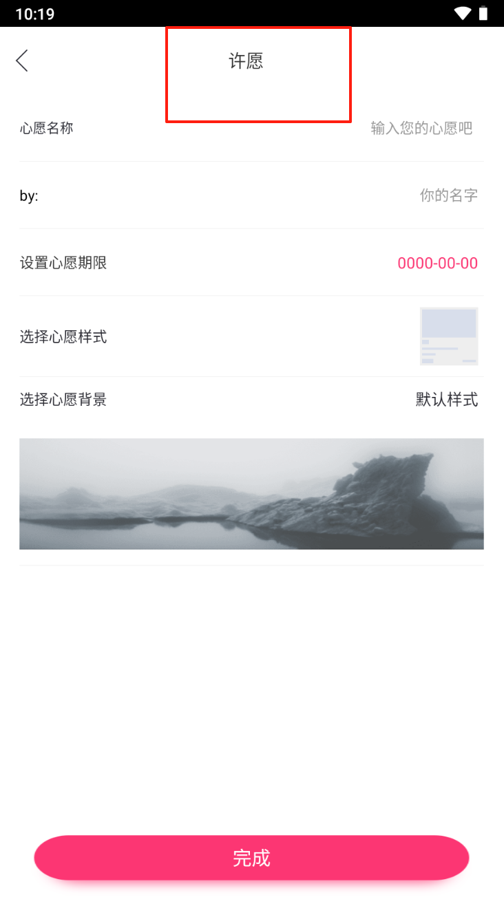 4、创建心愿单:点击“心愿单”输入心愿名称和期限,点击“完成”保存心愿。