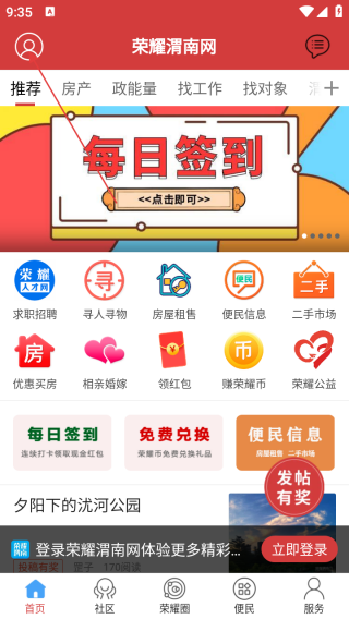 荣耀渭南网是渭南地区权威的智慧生活服务中枢,为六百万市民构建全域数字化生活生态体系。平台深度融合城市服务与社区互动功能,通过智能定位技术实时推送周边三公里生活圈动态,涵盖政务服务预约、商圈优惠导航、人才供需对接等核心模块。独创的融媒体系统整合本地头条资讯与民生政策解读,支持短视频动态分享与兴趣社群创建,实现信息获取与社交互动无缝衔接。其创新的LBS商务导览功能可智能规划消费路线,结合会员积分通兑体系,为用户提供家政服务到旅游出行的解决方案,打造全天候在线的城市生活管家。