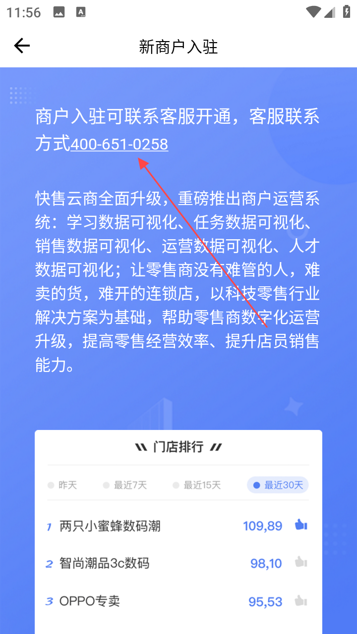 4、新商户入驻可拨客服电话400-651-0258,咨询开通及系统功能详情。