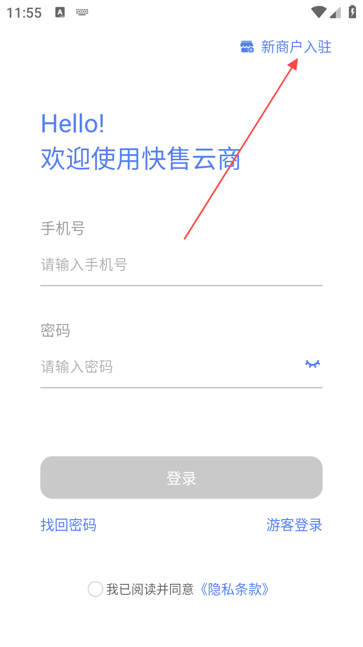 3、在登录页,若为新商户,点【新商户入驻】,了解入驻方式。