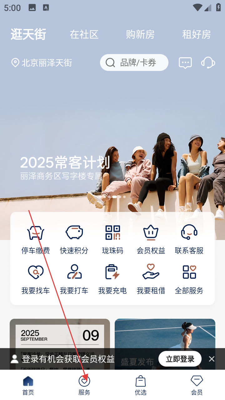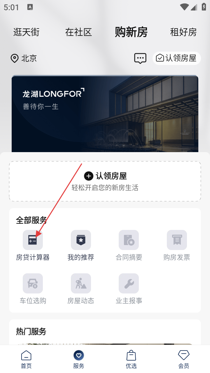 1、打开龙湖APP,在首页点击底部【服务】选项,进入服务页面。