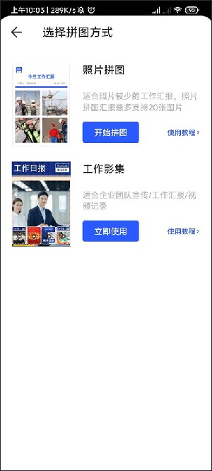 2、现在我们来到了拼图方式选择,点击工作影集。