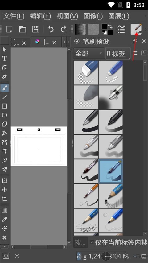 在笔刷预设面板中,点击任意一个笔刷图标就等于选中了该笔刷,它会被用于在画布上作画。