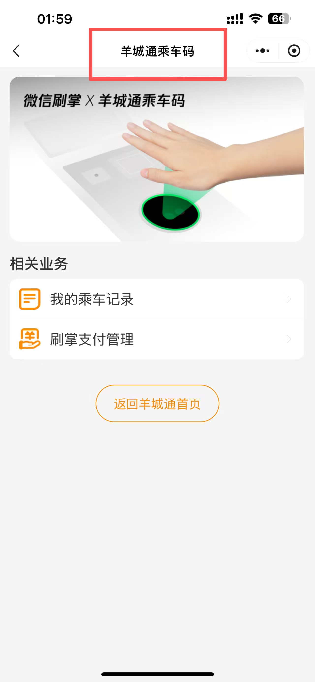 1、点击“羊城通乘车码”进入乘车码页面。
