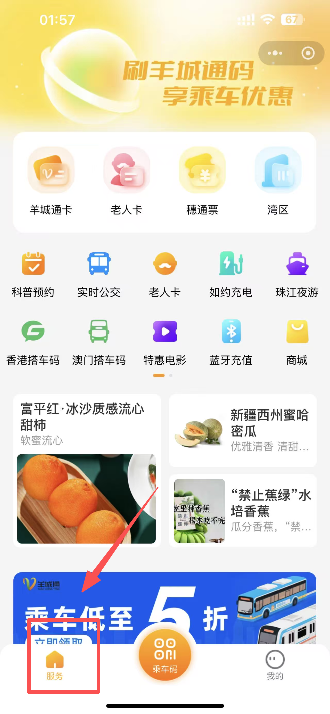 3、点击“服务”按钮,获取更多乘车相关服务。