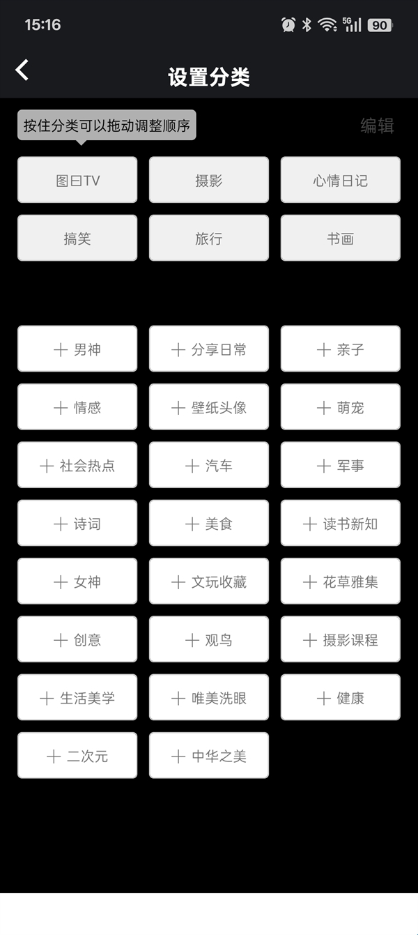 1、打开图日App,可以看到许多功能模块,包括图库、摄影、旅行、搞笑等