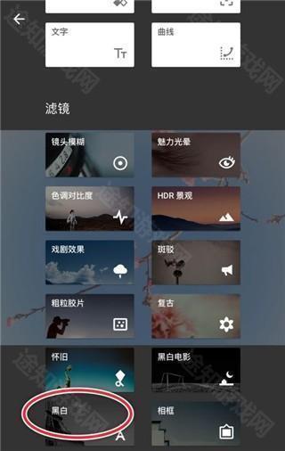 5、依据个人喜好以及图片的构成来挑选恰当的滤镜。例如,由于想要营造复古的风格,所以我选择了【胶片】滤镜,当然也可以选择【黑白】滤镜。