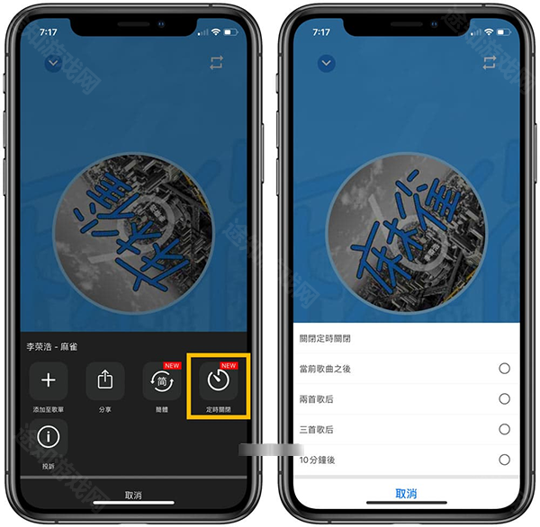 2、在播放器控制上,可点开右侧「...」可叫出第二层选单功能,里面则有新增歌单、分享、切换简繁歌词,以及可设定