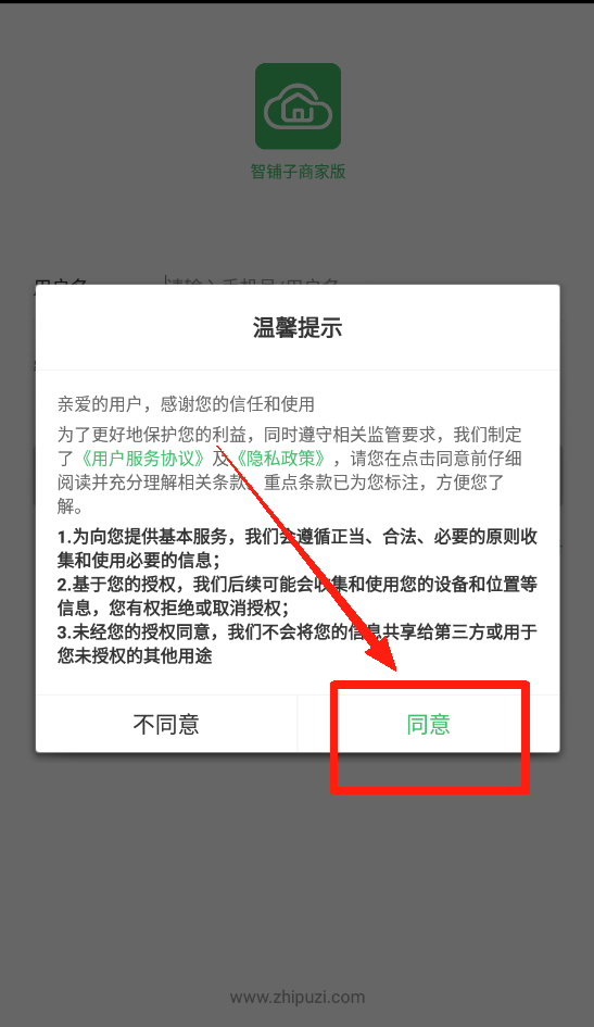 1、同意隐私政策。阅读并点击“同意”以接受用户服务协议和隐私政策。