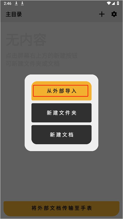 2.选择导入:在弹出菜单中点击「从外部导入」。