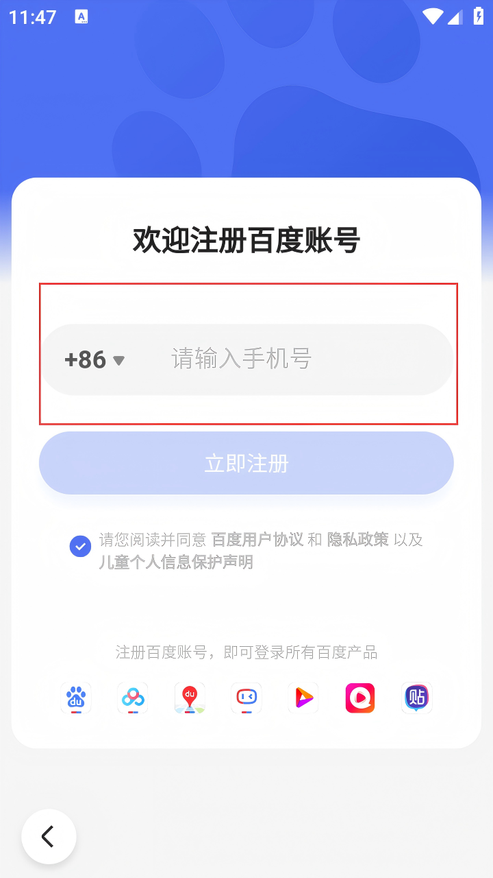 4、在注册页面,输入手机号,点击【立即注册】,按照提示完成注册流程。