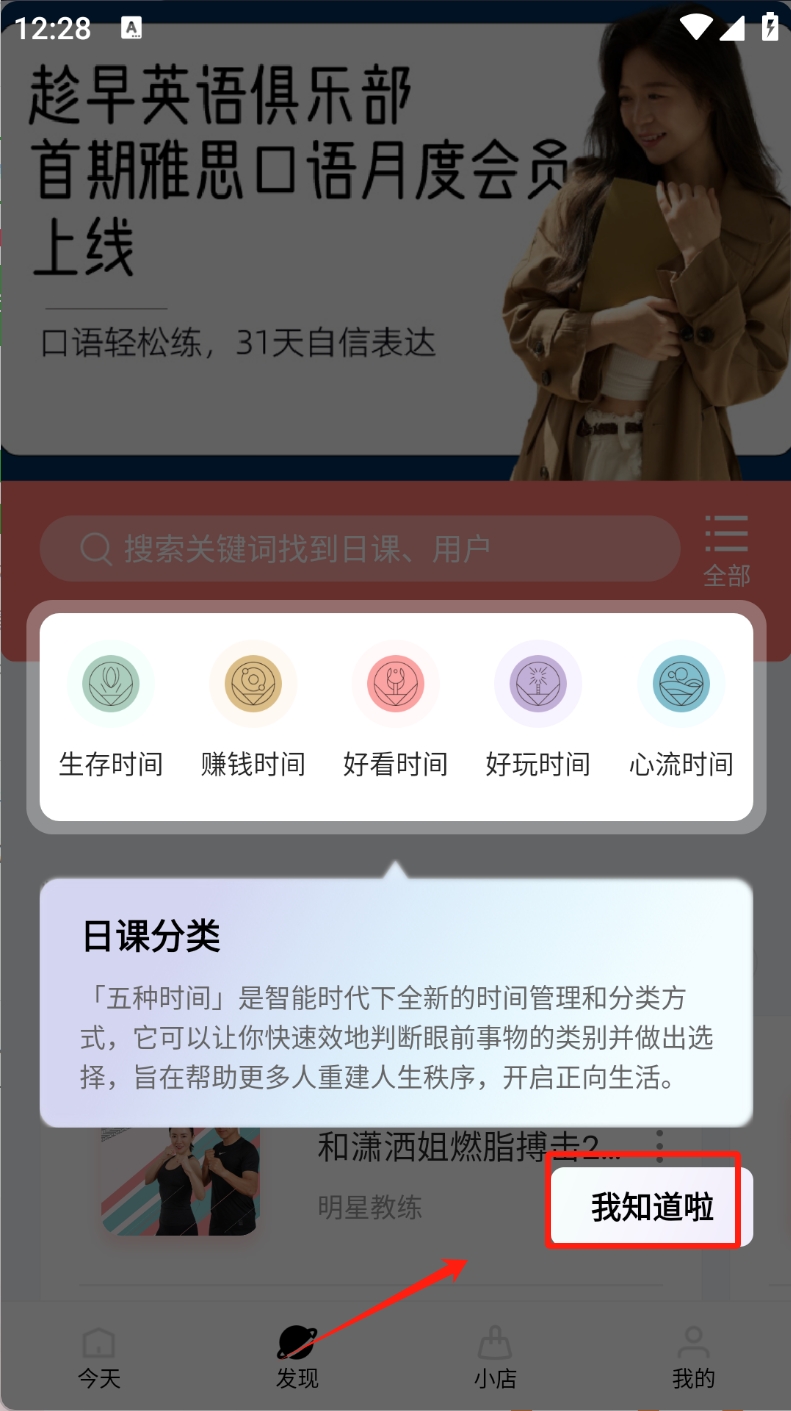 2、查看日课:点击“我知道啦”按钮,了解五种时间分类和日课内容。
