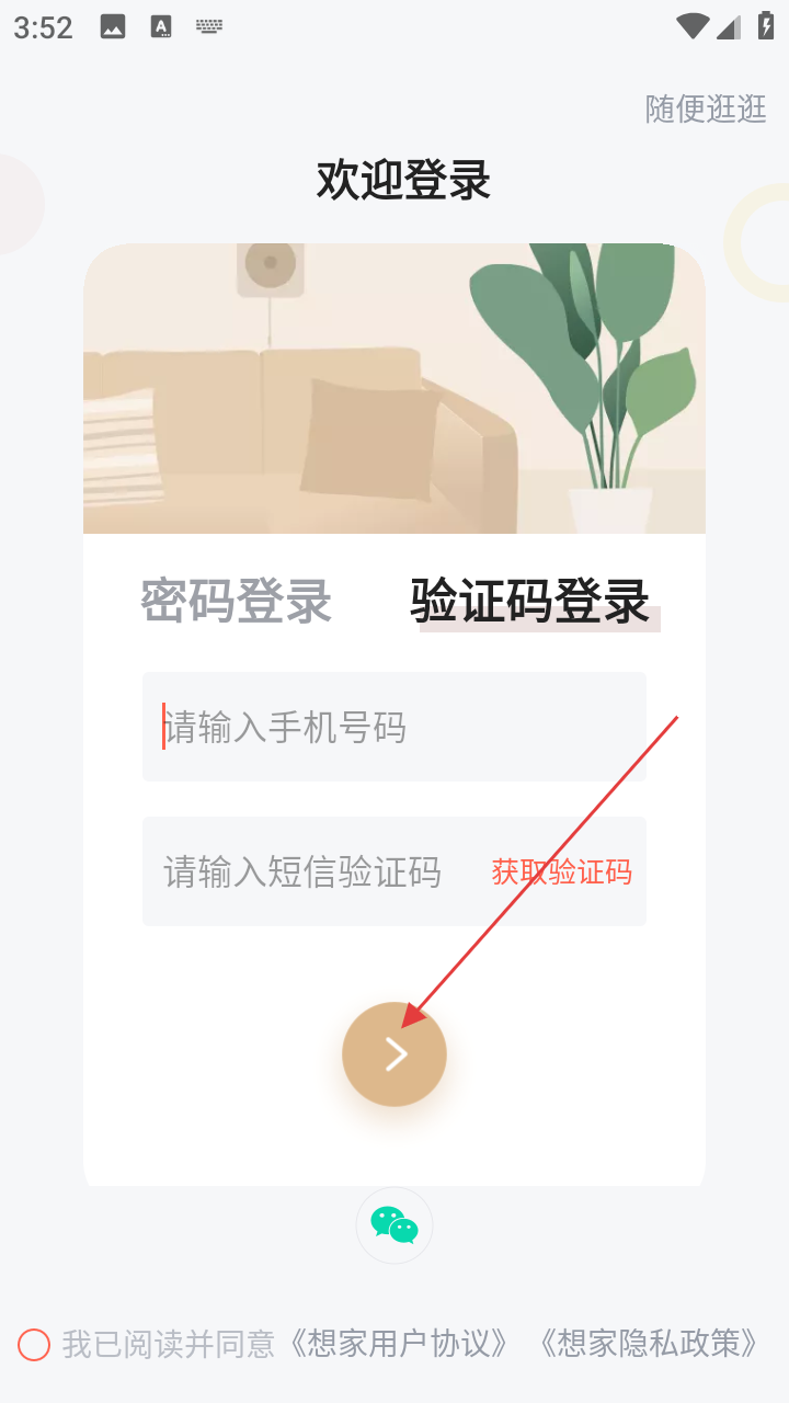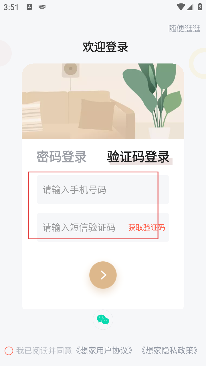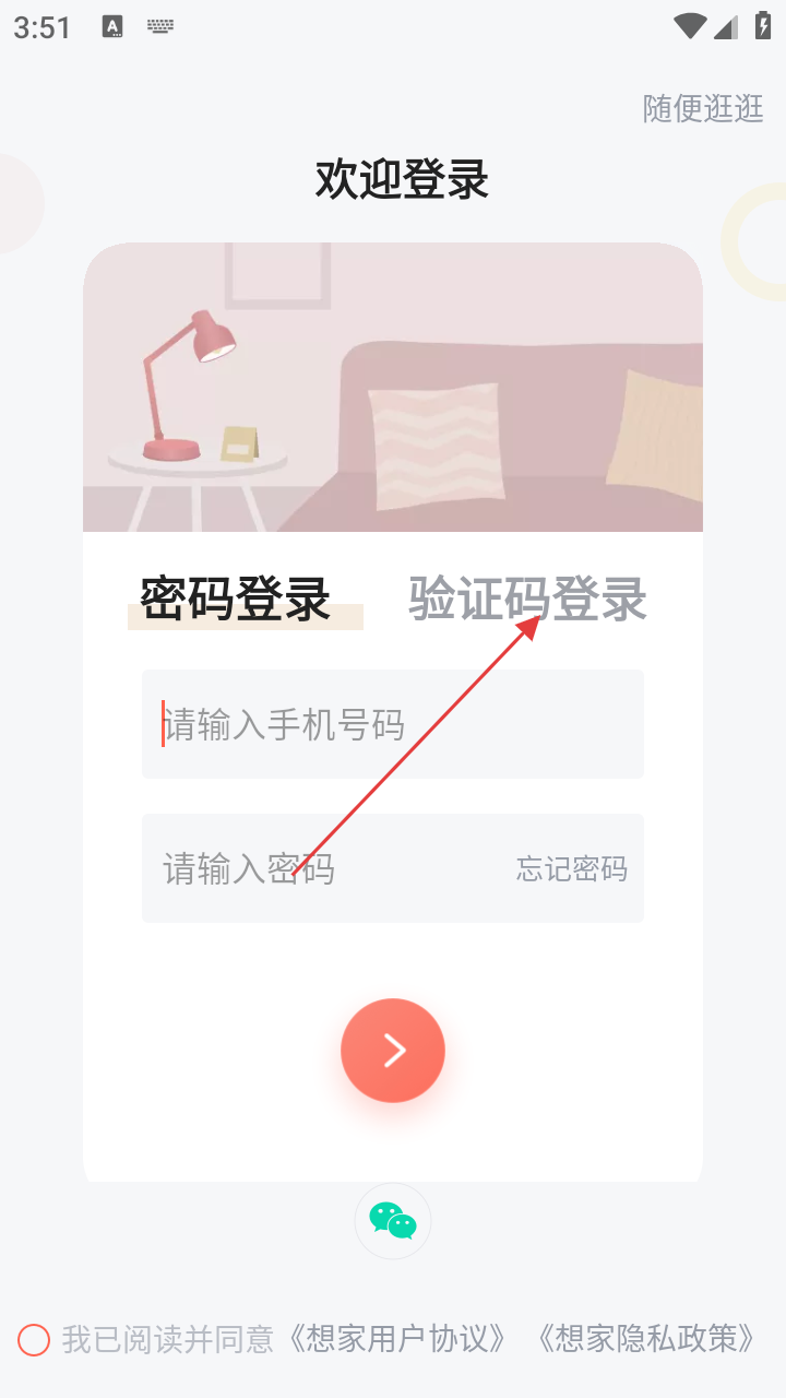 2、进入登录页,选择【验证码登录】切换至对应登录方式。