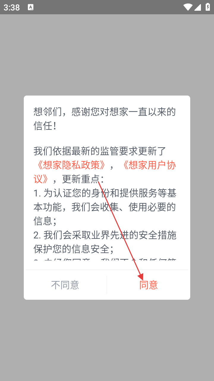 1、首次使用应用,弹出【隐私政策和用户协议】弹窗,点击【同意】以继续。