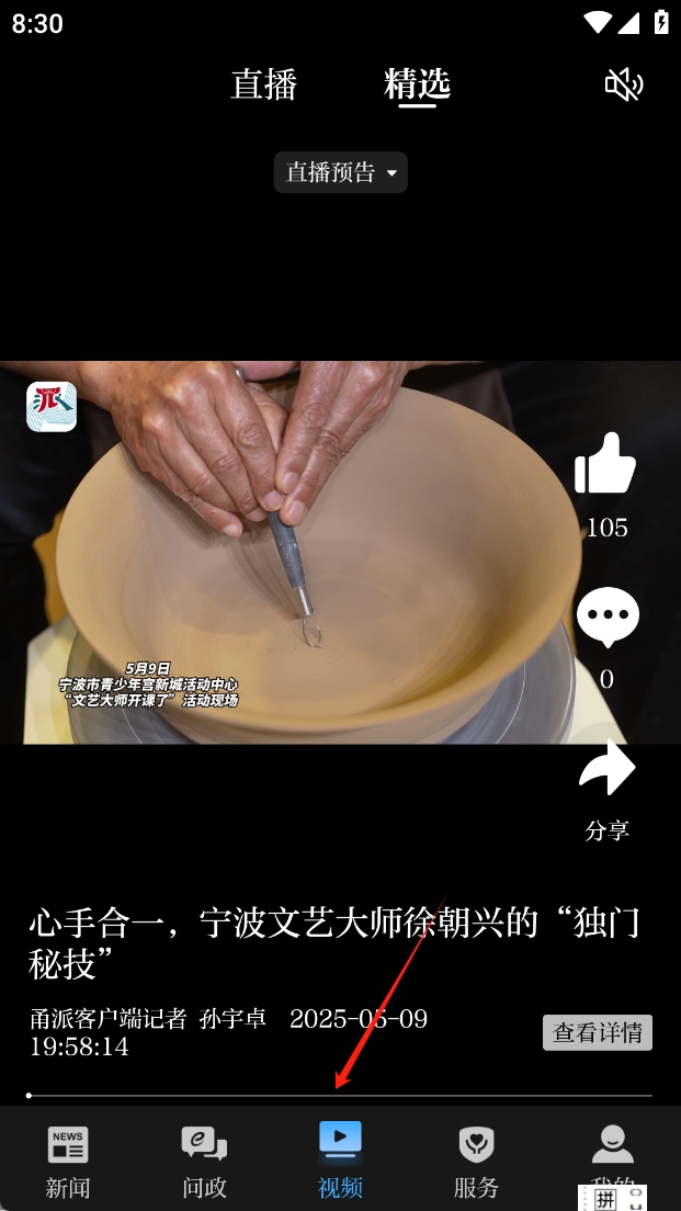 3 、观看“视频”页面,了解宁波文艺大师徐朝兴的独门技艺。