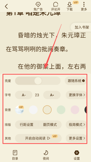 4、阅读设置选项允许用户自由调整界面背景和字体样式,打造最符合个人喜好的阅读环境,让您畅享无阻阅读乐趣。