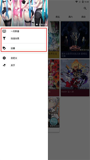 2、点开左上角将可以展开菜单栏,这里有一月新番、动漫分类、追番等列表;