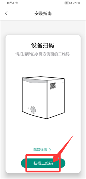 4、最后在设备扫码界面点击扫描二维码,对准设备机身条码完成添加。