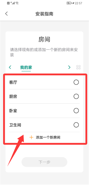 2、进入安装指南,为设备选定对应的房间位置,也可创建新房间。