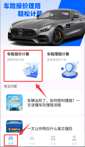 2、进入软件主页后,点击 “车险报价计算” 选项,进入车险计算器页面。