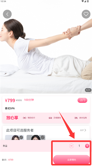 4、选定项目并确认服务数量,最后点击立即预约完成操作。