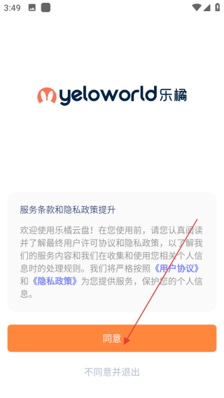 1、打开应用查看协政策点击同意。