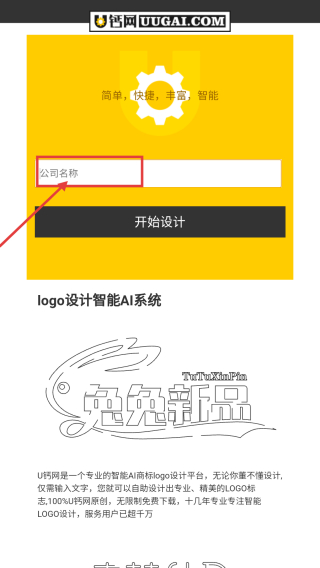 1. 开启LOGO设计相关平台,于公司名称的输入框内键入“尤一是我”。