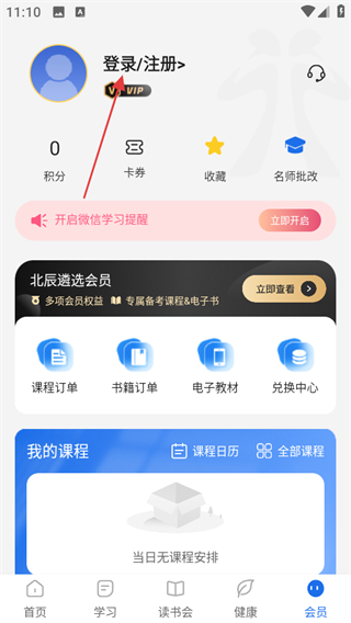 2、在会员页面,点击登录注册,进入账号登录页面。