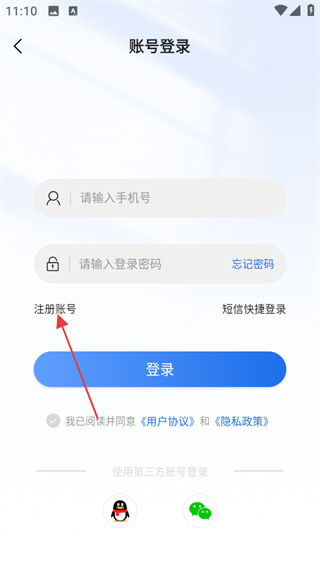 3、在账号登录页面,点击注册账号,进入注册账号页面。